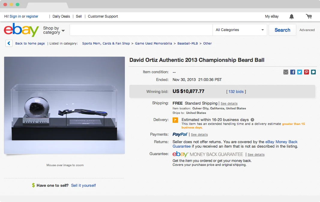 The 2013 Red Sox grew beards and won the world series. That made them lucky beards. We shaved those beards, turned them into balls and sold them on ebay for charity.